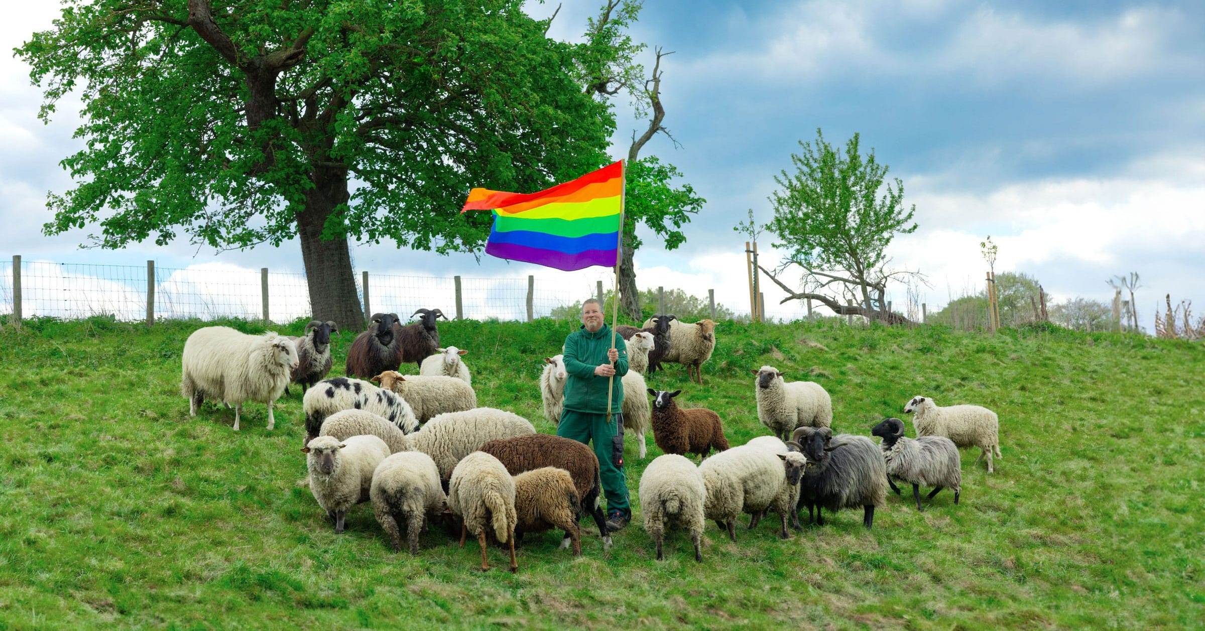 Quando? 20/11/2025 📅Uma coleção de moda inusitada tomou Nova York: a I Wool Survive trouxe peças feitas com lã do que é chamado de o primeiro rebanho de ovelhas gays do mundo, resgatadas na Alemanha por Michael Stücke, fundador da Rainbow Wool. Em parceria com o Grindr e o designer Michael Schmidt, o desfile exibiu 36 looks fantasiosos de lã de carneiros que demonstram orientação sexual por outros machos, um comportamento estimado em cerca de 8% dos carneiros.